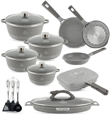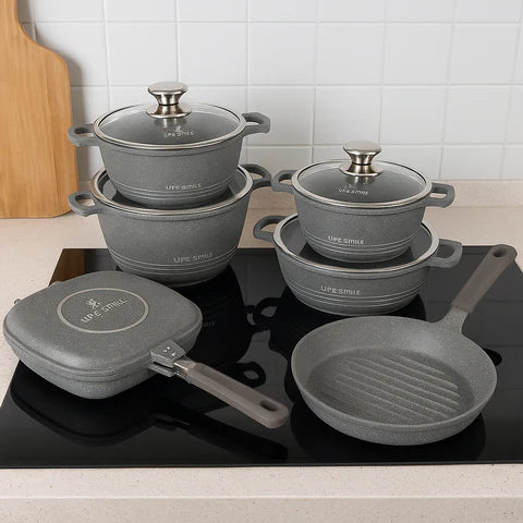 Versatilidad Total: Incluye sartenes, cacerolas y ollas de distintos tamaños, cubriendo todas tus necesidades en la cocina.